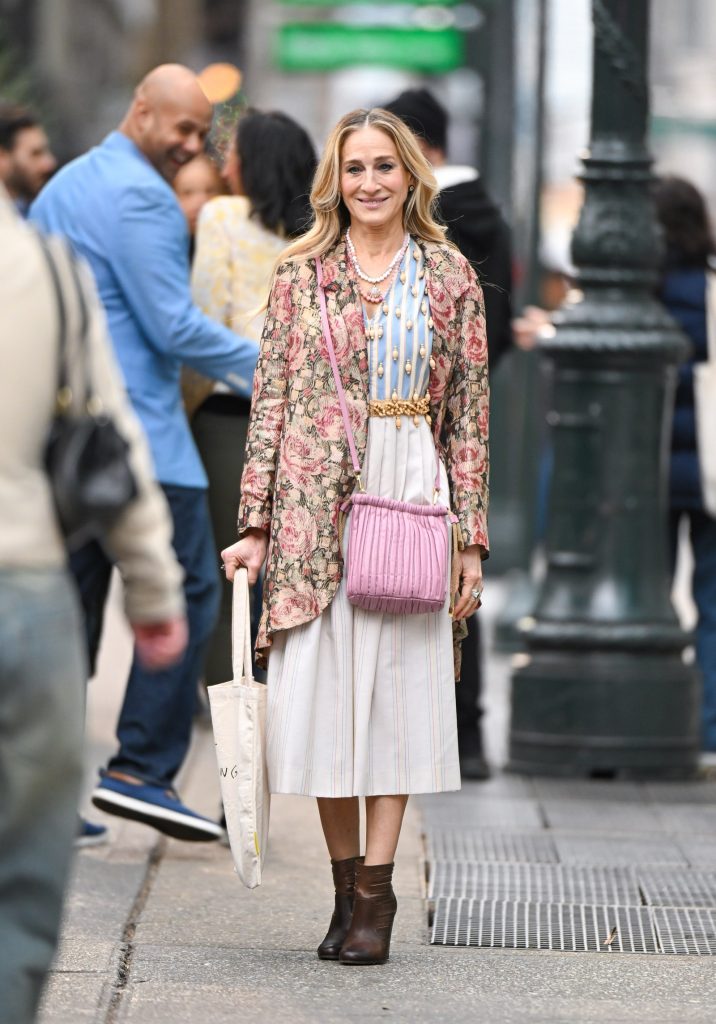 De-a lungul anilor, ea ne-a învățat atât de multe lecții vestimentare, mai ales în ceea ce privește accesoriile. Rareori o vezi pe Parker ieșind cu o geantă sau cu pantofi plictisitori – chiar și saboții ei sunt suficient de cool pentru a face ca o pereche obișnuită de pantaloni de trening să pară interesantă.