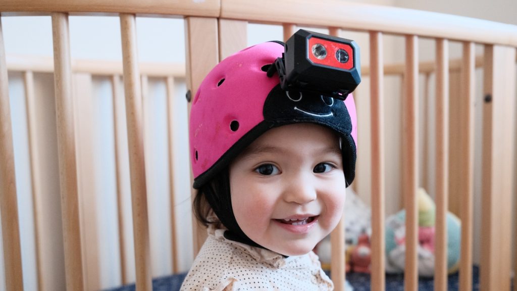 Cu ajutorul unei camere montate pe casca purtată de Sam, un băiețel simpatic din Australia, specialiștii au reușit să adune 61 de ore de înregistrări video. Asta pentru că Sam a purtat casca timp de două ore pe săptămână, de când avea doar 6 luni și până când a împlinit 2 ani. Ce au observat? De exemplu, atunci când unul dintre părinți folosea cuvântul „pătuț”, Sam avea tendința de a privi spre un anumit punct al locului în care se odihnea. La fel s-a întâmplat și cu mingea cu care se juca sau cu pisoiul care căuta un partener de joacă.
