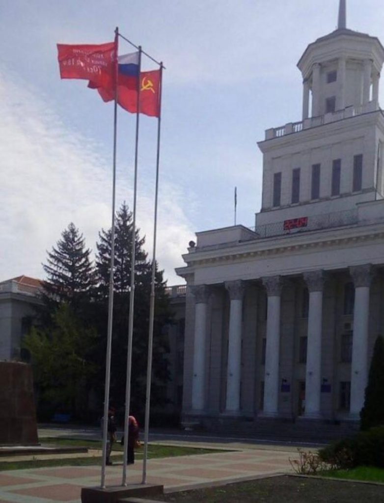 Armata Rusă arborează steagul Uniunii Sovietice deasupra orașului ocupat Nova Kahovka, din regiunea Herson. Anul acesta se împlinesc 100 de ani de la înființarea oficială a Uniunii Sovietice.
