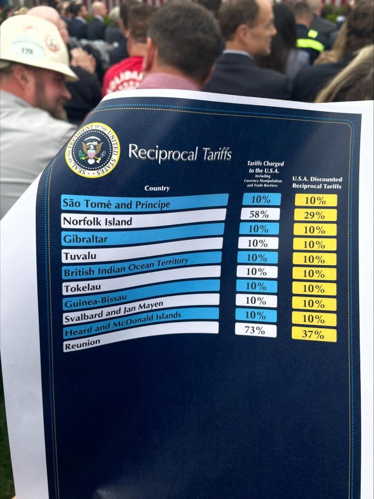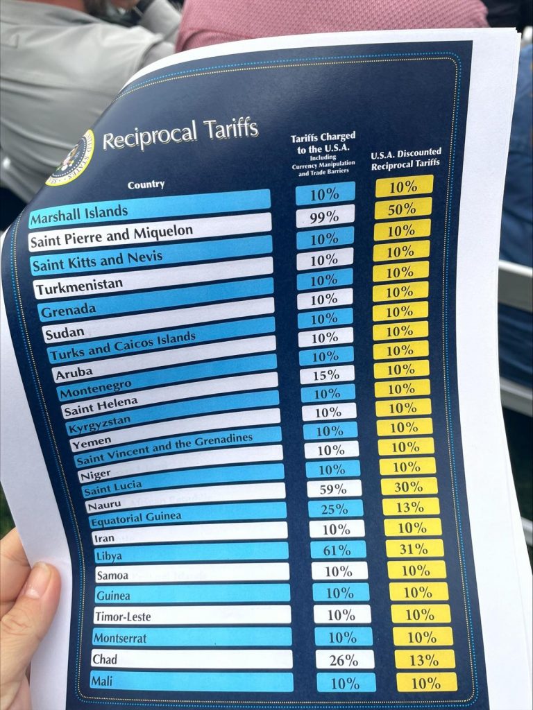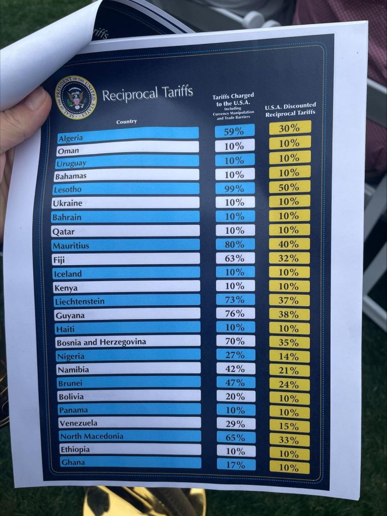 UPDATE 23:55 – Apar imagini cu listele tarifelor impuse de Trump / Rusia nu se află pe lista țărilor față de care SUA introduc taxe vamale pe bază de reciprocitate