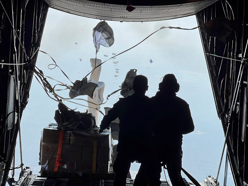 Biden a spus că SUA vor livra ajutorul pe cale aeriană în zilele următoare, fără a oferi detalii. Iordania și Franța au livrat deja ajutor în Gaza pe această cale.