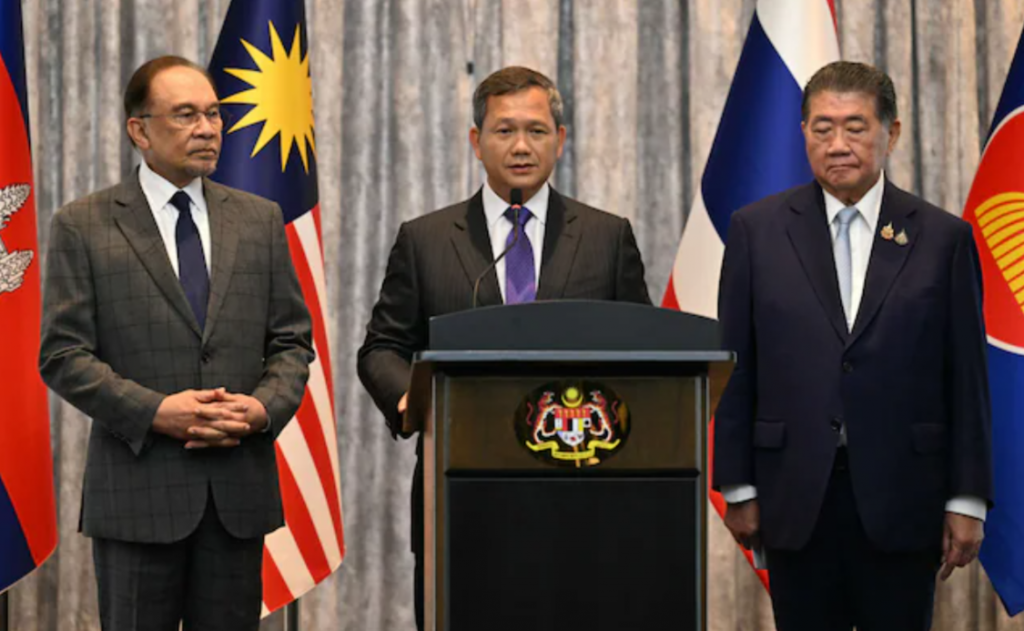 • Anwar Ibrahim, premierul Malaeziei, a anunțat acordul după medierea negocierilor de pace între cele două țări.