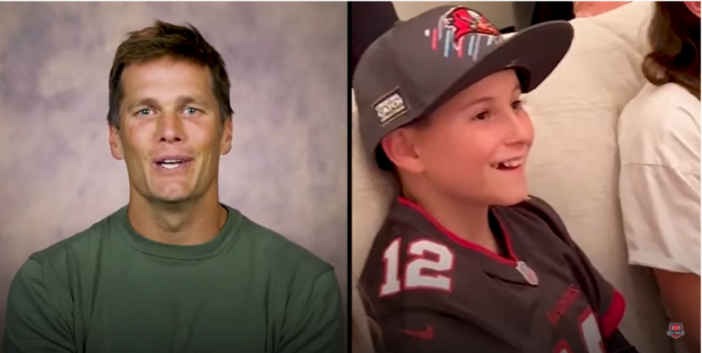 Emoționat, copilul a recunoscut încă o dată că a învins cancerul și datorită idolului său Tom Brady.