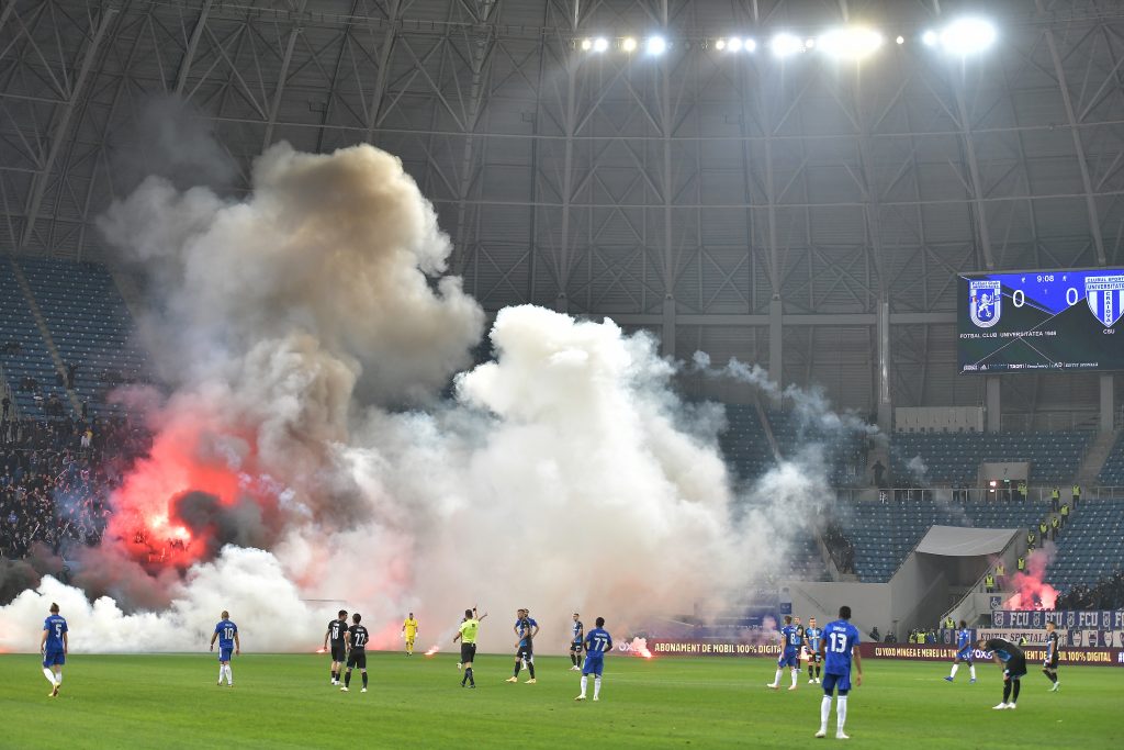 Meciul dintre FC Universitatea 1948 şi Universitatea Craiova s-a desfăşurat sub semnul protestelor, deoarece au avut acces pe stadion doar suporterii vaccinaţi şi cei care au avut COVID-19. S-au vândut doar 30% din bilete, iar Peluza Sud a rămas goală. În semn de protest faţă de restricţiile Guvernului, care interzic accesul pe stadion persoanelor nevaccinate, suporterii FC Universitatea 1948 nu au mers pe locurile care le erau rezervate.
