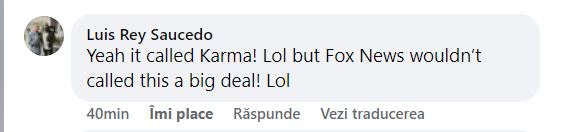 „Da, se numește Karma! Fox News ar spune că nu e mare lucru! Lol”, a scris un altul.